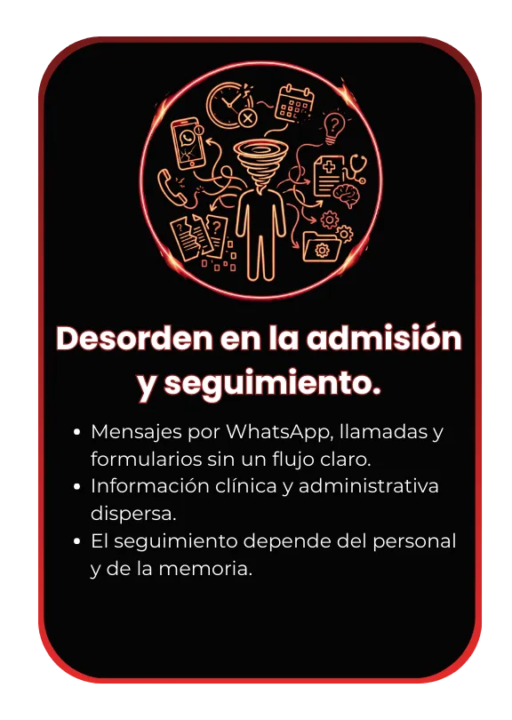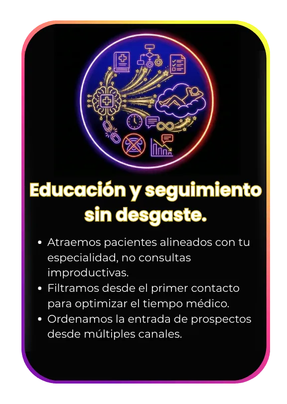 Ayudamos a Clínicas de Alta Especialidad a organizar su proceso de captación, atención y seguimiento de pacientes usando sistemas claros, éticos y controlados.